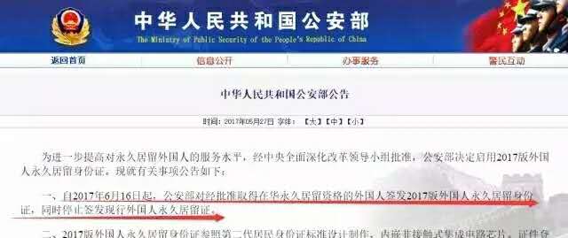 2017版外國人永久居留身份證已開始使用,6月16日起,公安部對經(jīng)批準(zhǔn)取得在華永久居留資格的外國人簽發(fā)2017版外國人永久居留身份證,同時(shí)停止簽發(fā)現(xiàn)行外國人永久居留證。