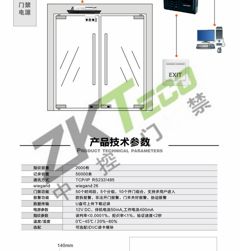 · 軟件 : 支持實時監測門禁軟件,指紋讀卡器軟件和考勤軟件等